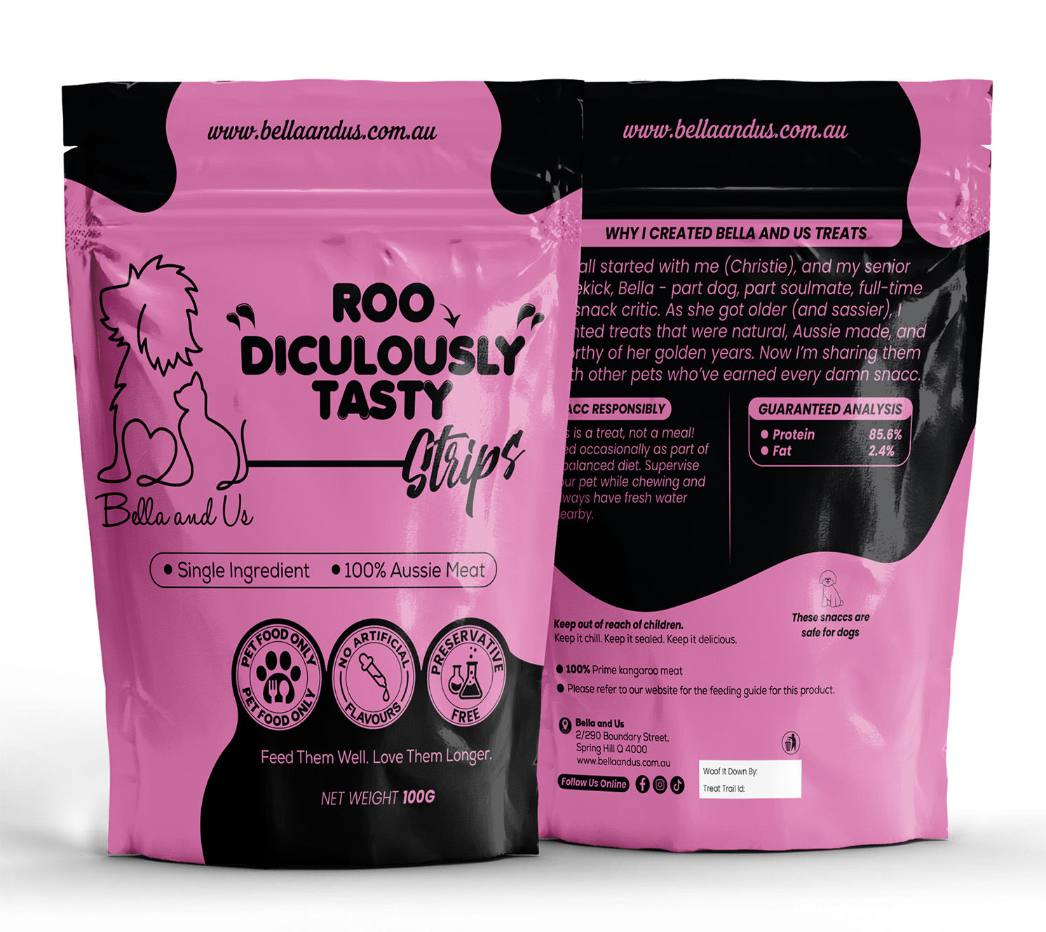 In the spirit of sustainability (and keeping Bella’s tail wagging), some orders may still come in our original ‘Dementia Doggo’ packaging. Same love, same Aussie-made snaccs, just less waste as we transition to Bella & Us 🐾✨